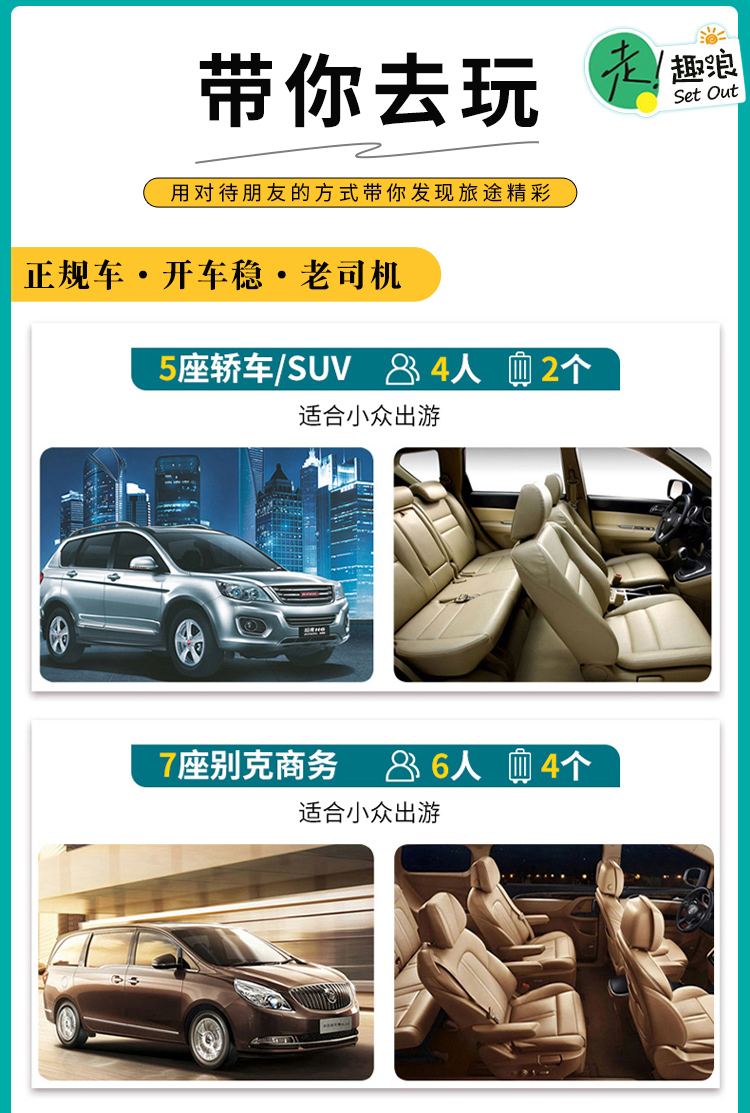 5.单拼车套餐不包含住宿门票及观光车票。拼车加住宿套餐不含景区门票及观光车票