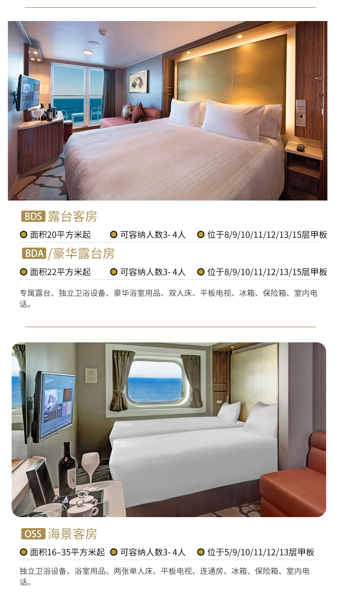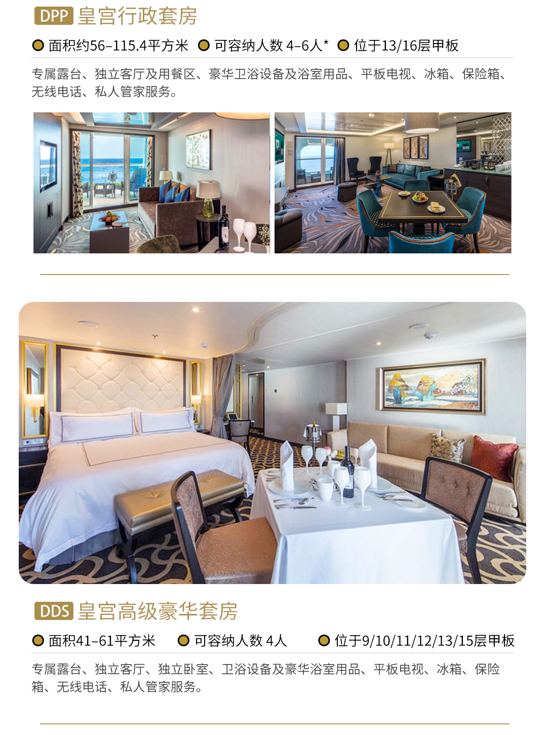 5、每种房型的房间号以及楼层以游轮公司批准为准,如果有特殊要求我们会尽量去申请满足客人的要求,但是不能保证。报价里的楼层是根据游轮公司提供的信息来参考,具体以最后出船票的房间号码和楼层为准。