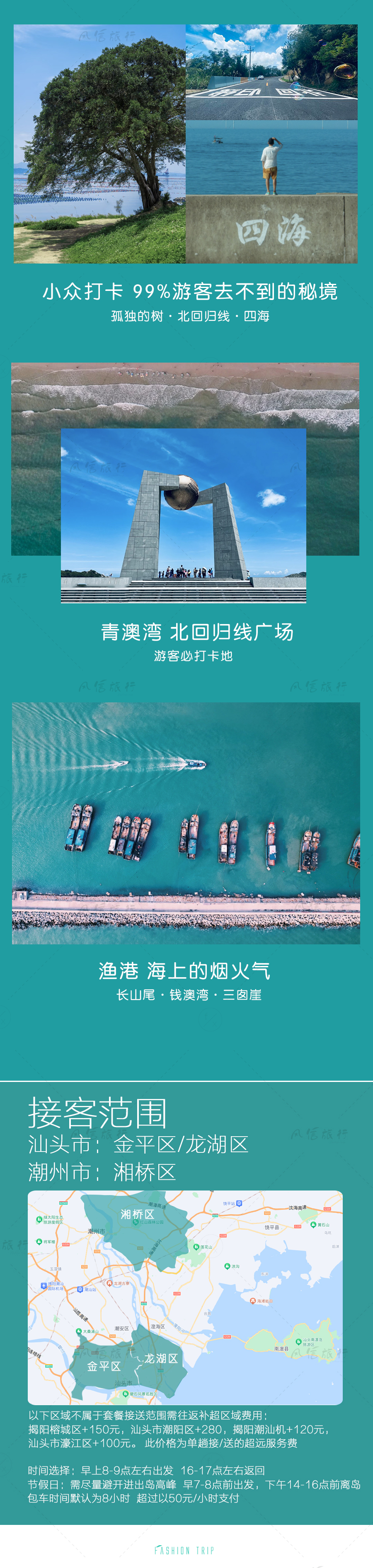 4、行程不含景点门票和用餐,如若行程涉及景点需要入内,可现场自行购票,南澳岛的景点门票都十分便宜。用餐地点可根据客户需要安排,也可以让地接推荐本地人气餐厅,自费用餐;