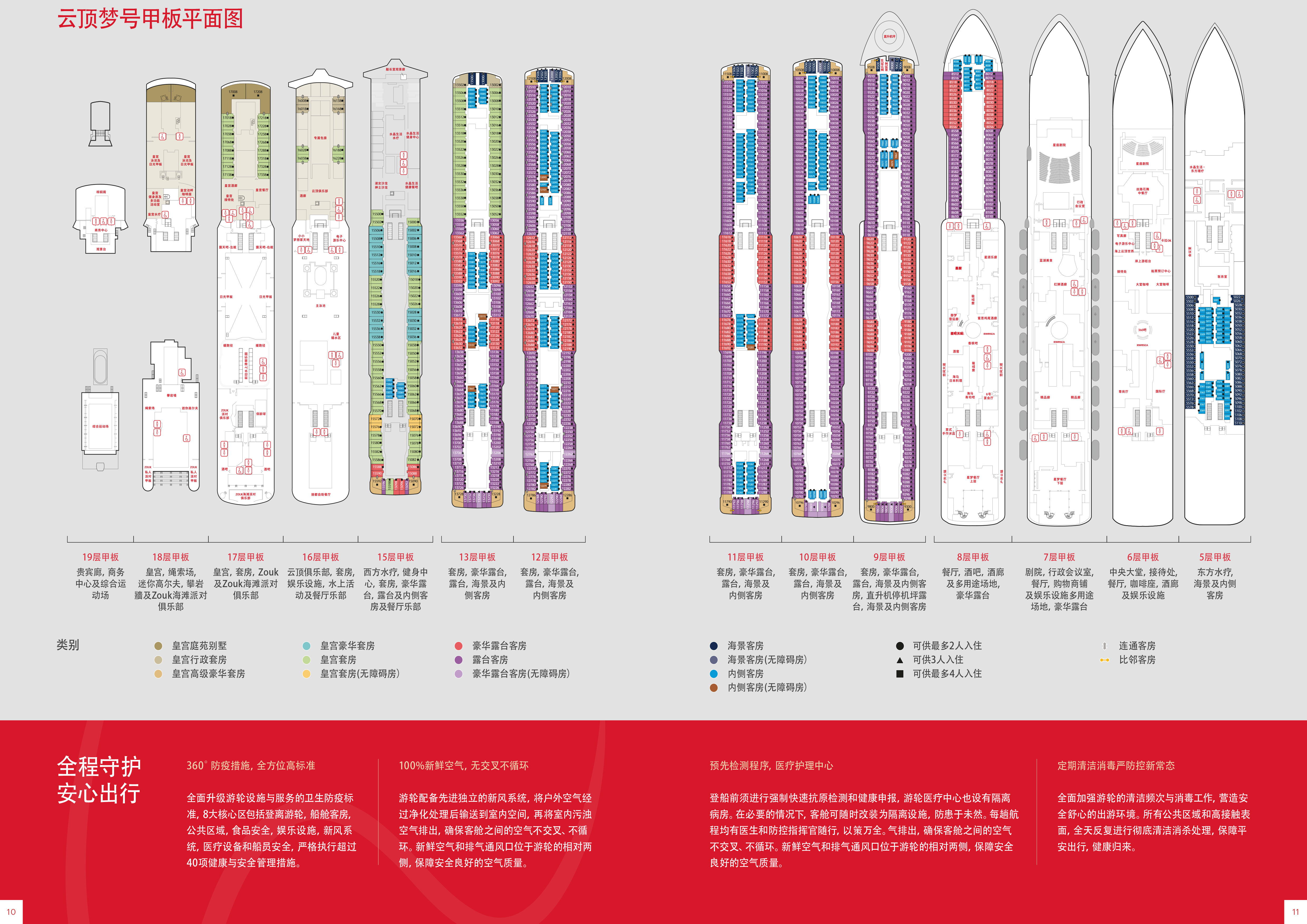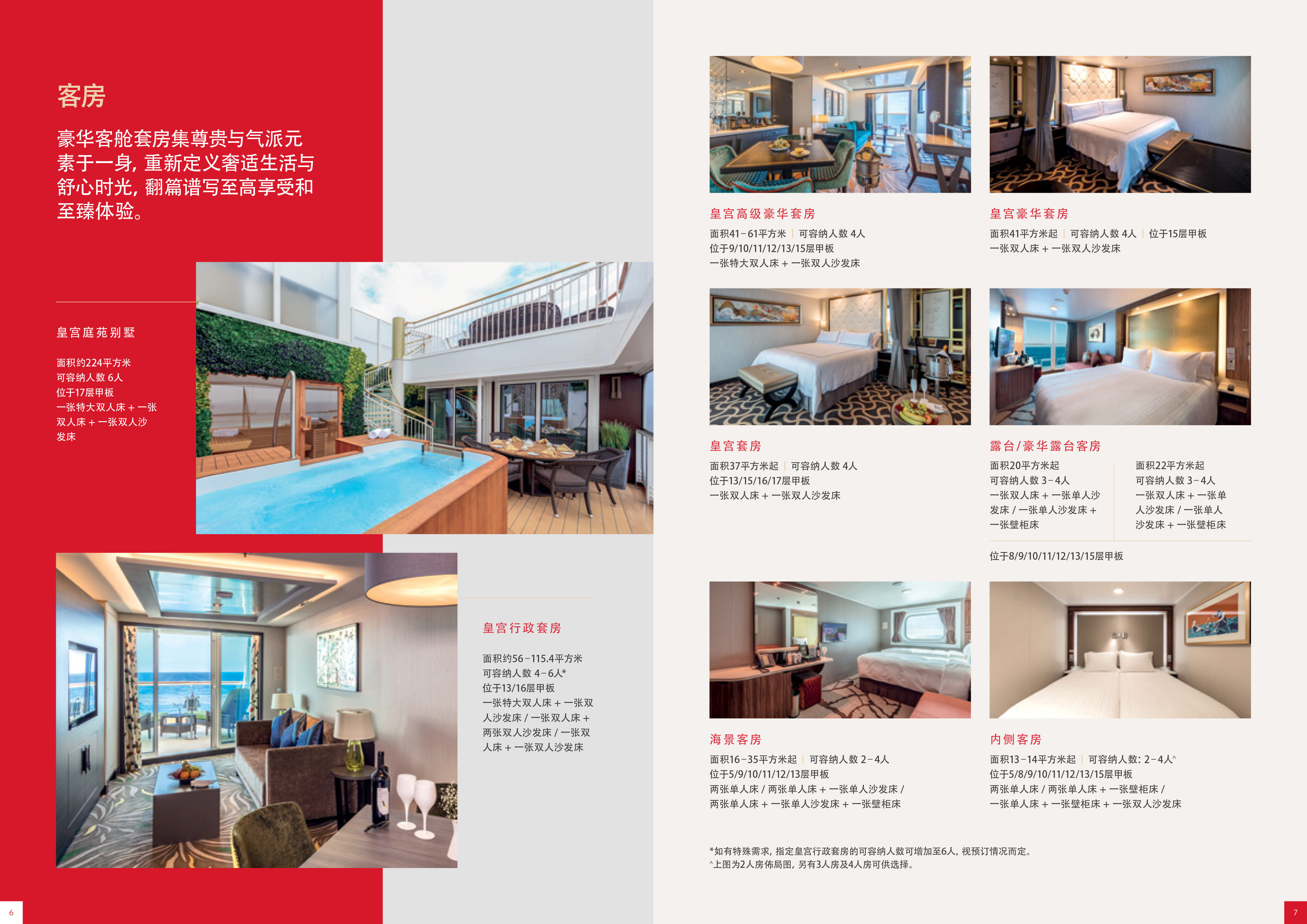 5、每种房型的房间号以及楼层以游轮公司批准为准,如果有特殊要求我们会尽量去申请满足客人的要求,但是不能保证。报价里的楼层是根据游轮公司提供的信息来参考,具体以最后出船票的房间号码和楼层为准。