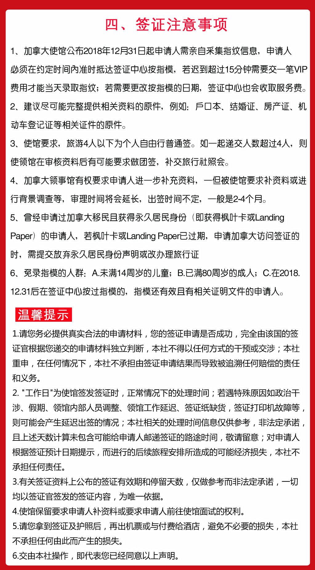 温馨提示:当您选择我社签证服务时,视同您已认同此条款的内容,预祝您顺利获得签证。