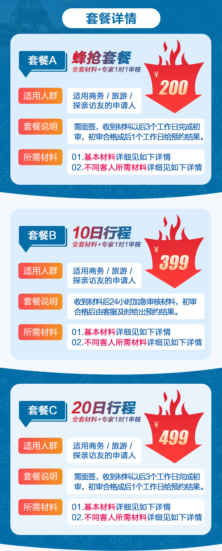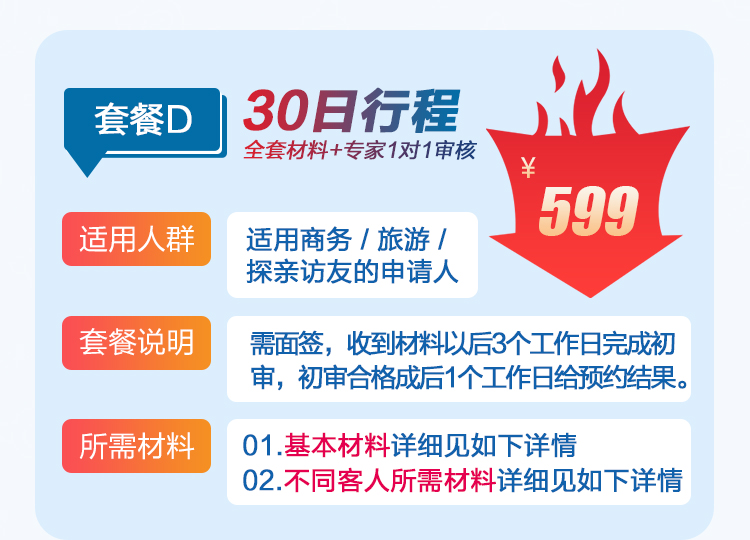 - 加急套餐-10个工作日内 30日行程¥599起