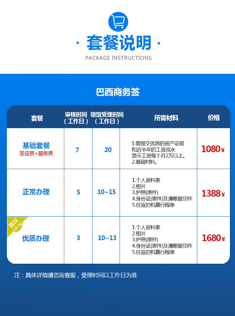 - 加急套餐-6个工作日内 巴西 商务签证优质办理¥1388起