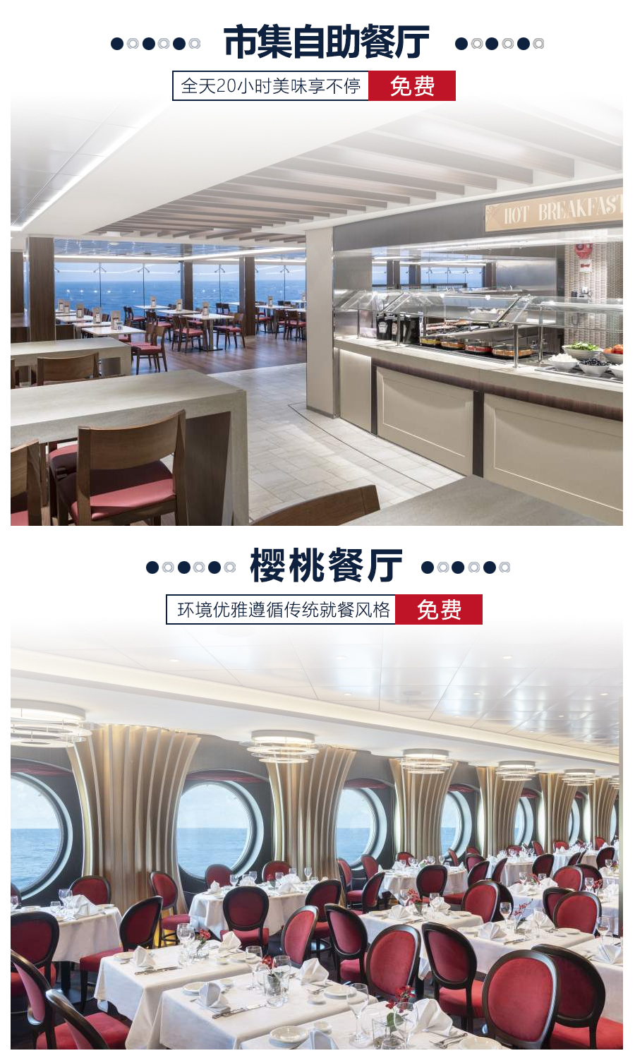 2. 游轮上提供免费一日三餐,另有下午茶及夜宵;