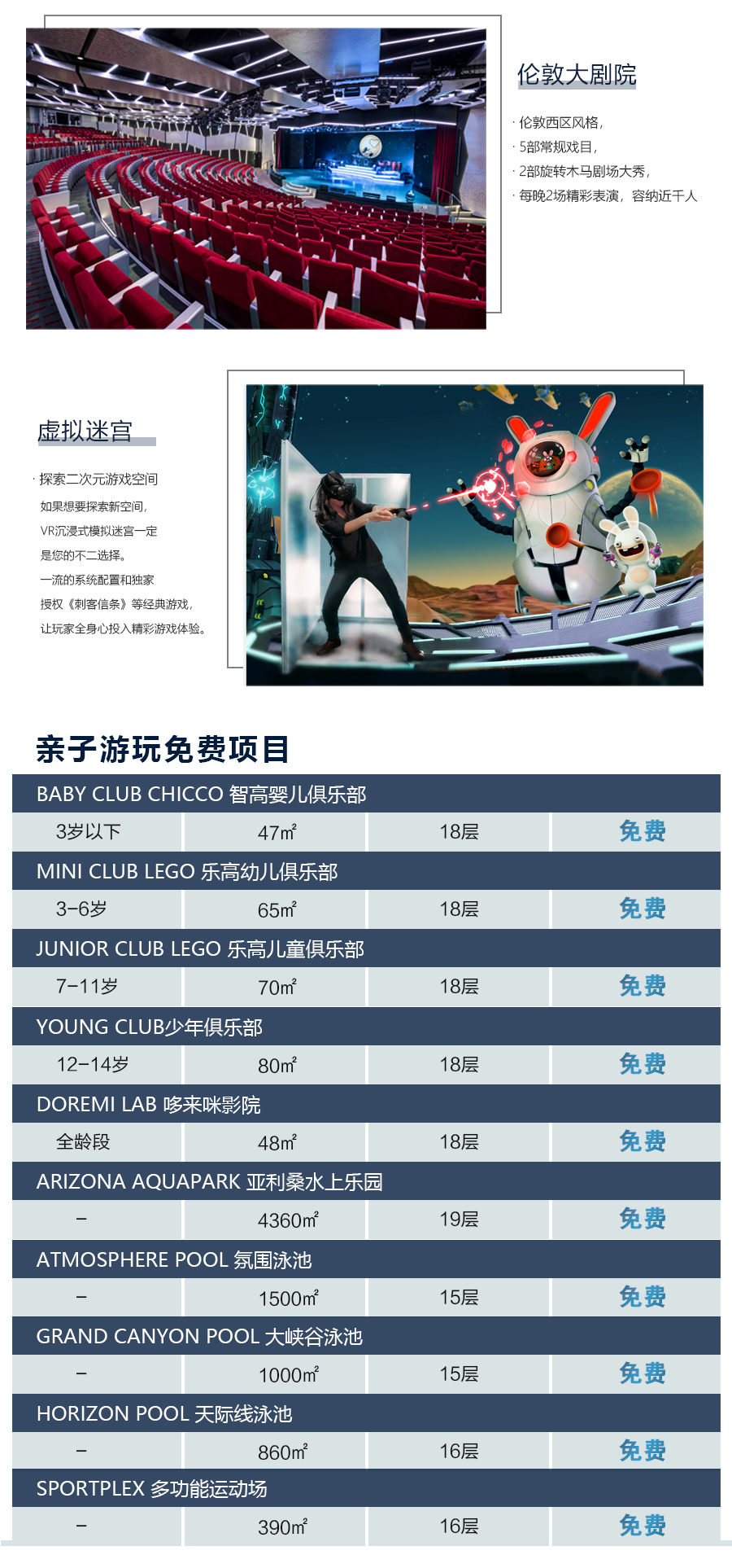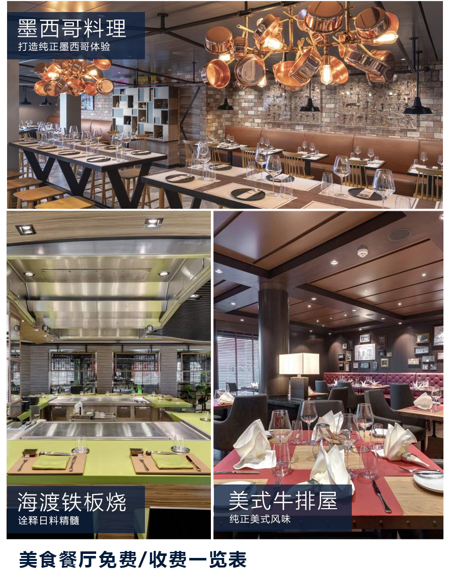 3. 游轮上指定开放式免费设施、场所,免费观看、参加指定的娱乐节目及活动(特别注明的收费活动除外)
