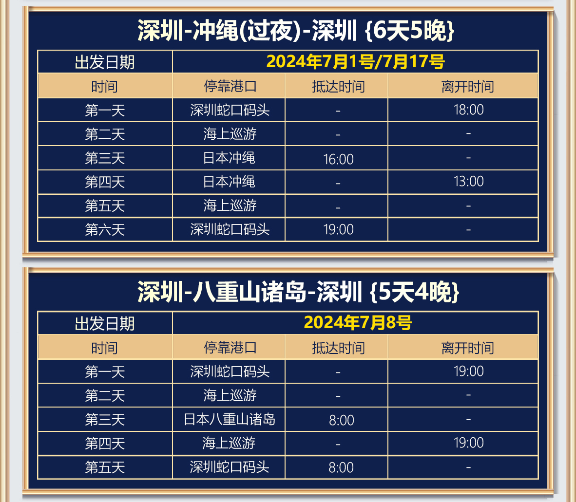 - 船上配备医生和护士,就诊挂号费用、治疗费及药费需额外收取。