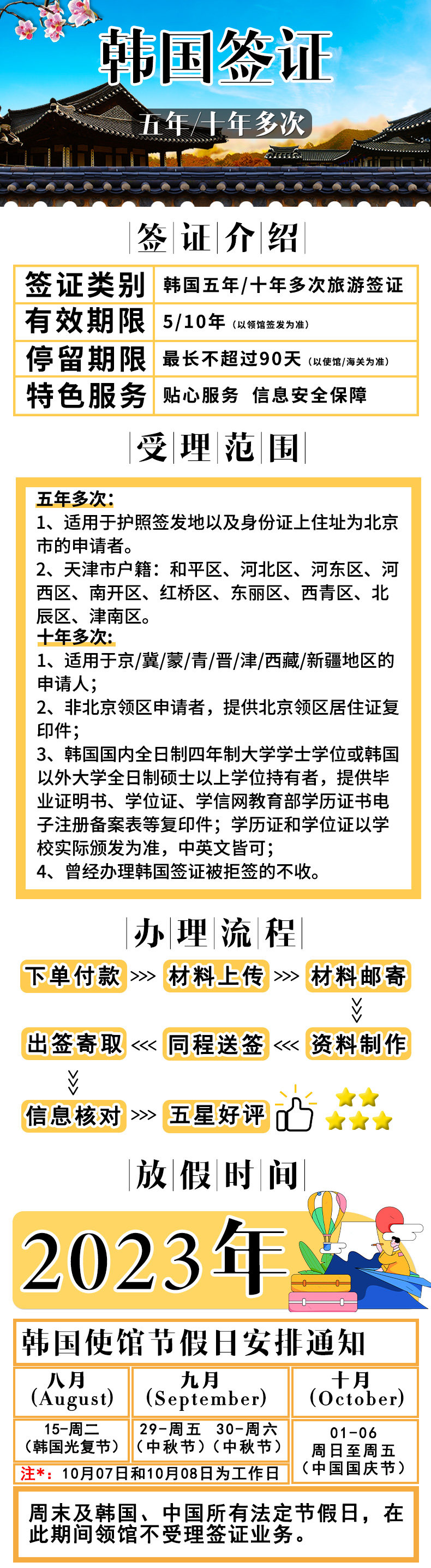 3、北京领区韩国十年多次个人旅游签证办理前提: