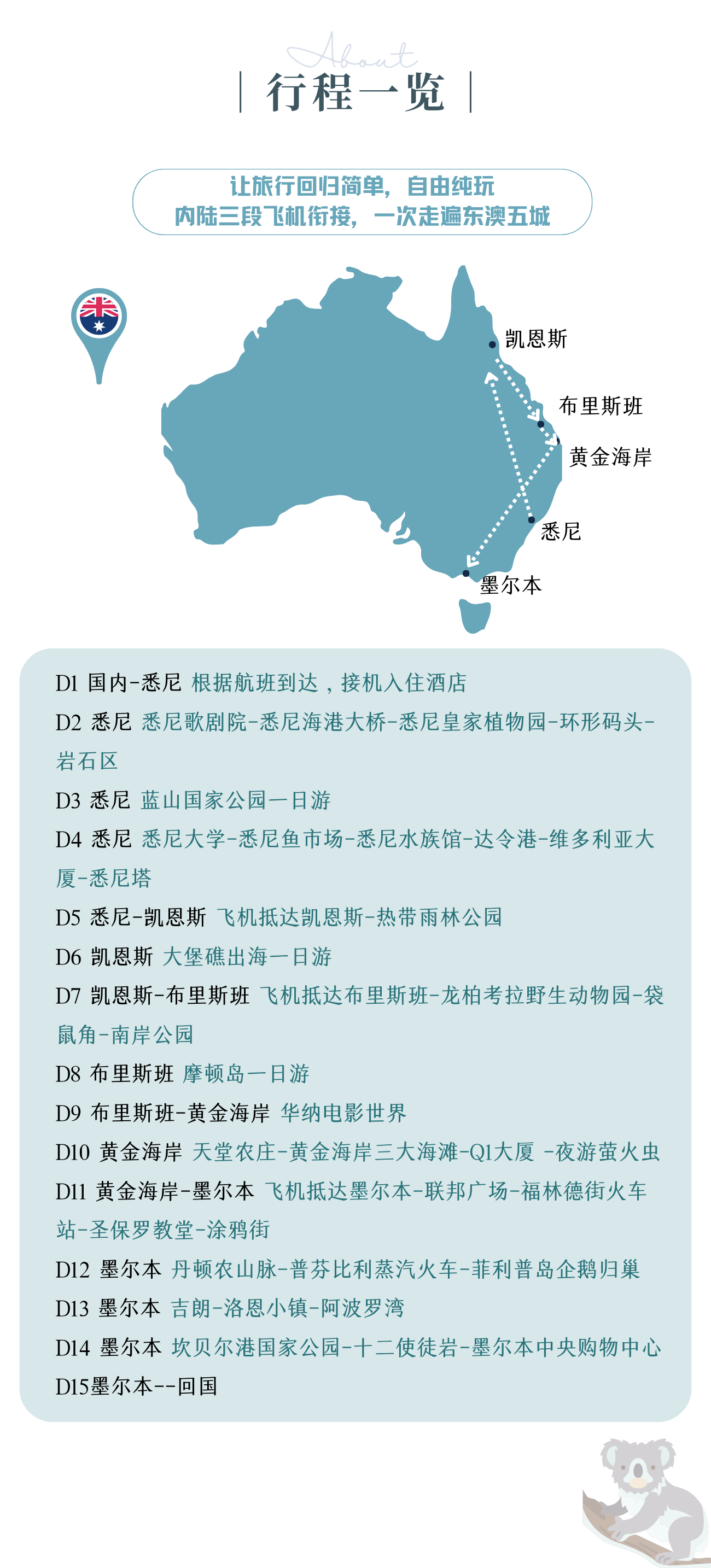 1.内陆3段机票: 悉尼-凯恩斯/凯恩斯-布里斯班/黄金海岸-墨尔本,经济舱机票