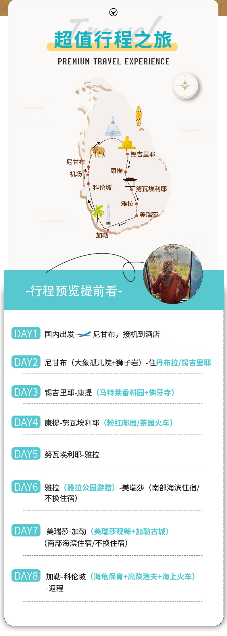 1. 机票:国内出发-科伦坡的往返机票(全国可搭配联运)