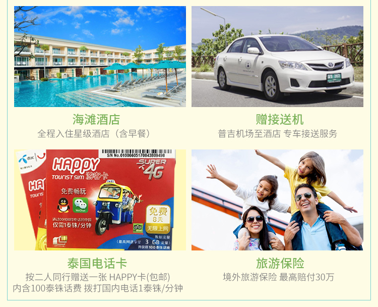 3. 接送机:普吉机场至酒店往返专车接送机+清迈机场至酒店接送机,共四程接送机服务;