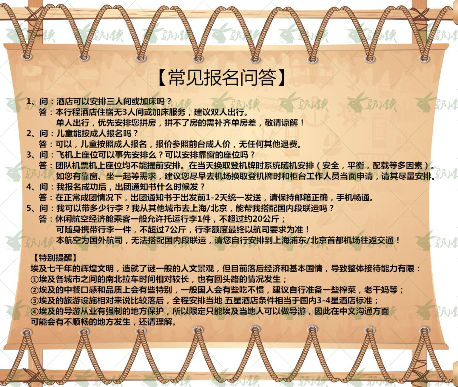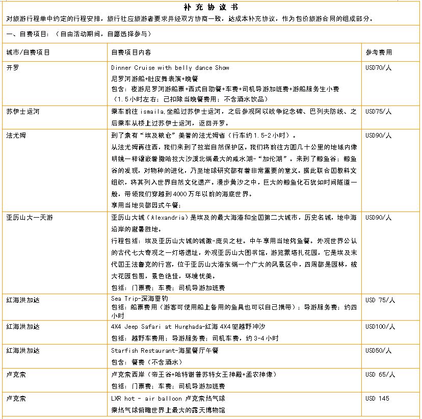 2.埃及落地签证费:200/人(请於出团前连同团款一齐付清)