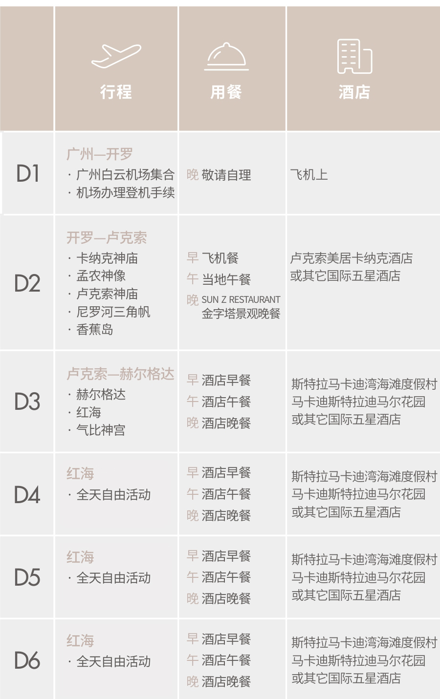 行程表中所列航班的起抵时间均为当地时间,“+1”表示航班第二天抵达; 行程表中所列餐食,“X”表示该餐食不包含在行程中;