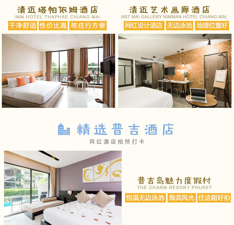 2. 酒店:全程入住6晚星级酒店(3晚清迈+3晚普吉,均含早)