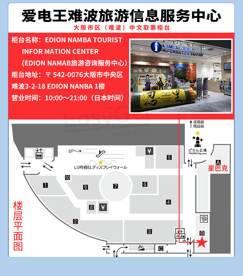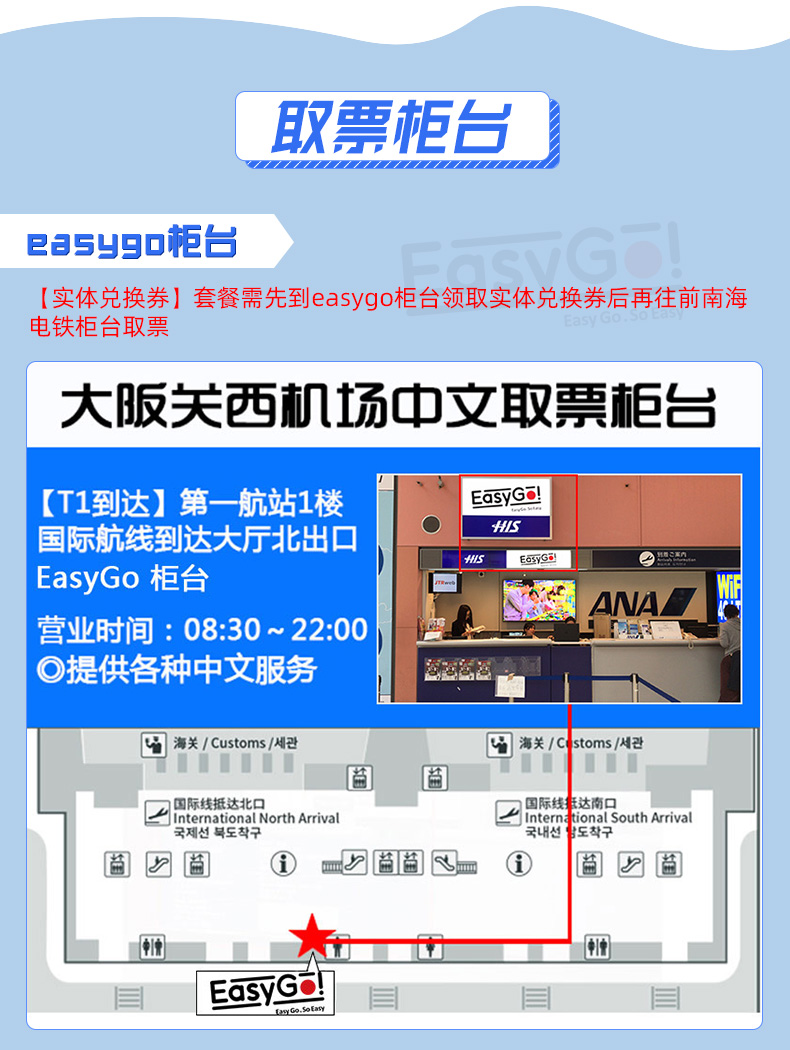 【实体兑换券】套餐需先到easygo柜台领取实体兑换券后再往前南海电铁柜台取票
