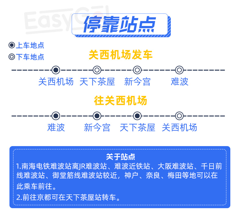 3.往返票,从市区回程, 请持同一凭证在南海难波站、新今宫站或天下茶屋站兑换特快 Rapi:t 车票。