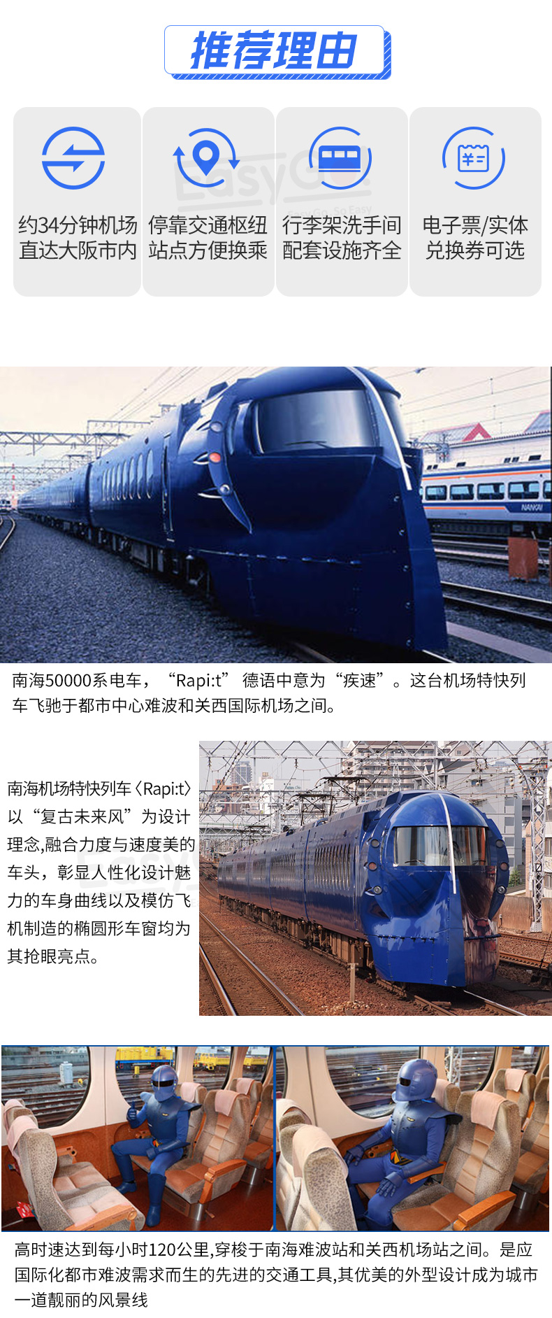 3.【实体兑换券】仅限持短期滞在护照的游客购买,在关西机场或难波爱电王easygo柜台领取兑换券后,至南海车站兑换特快 Rapi:t 车票。