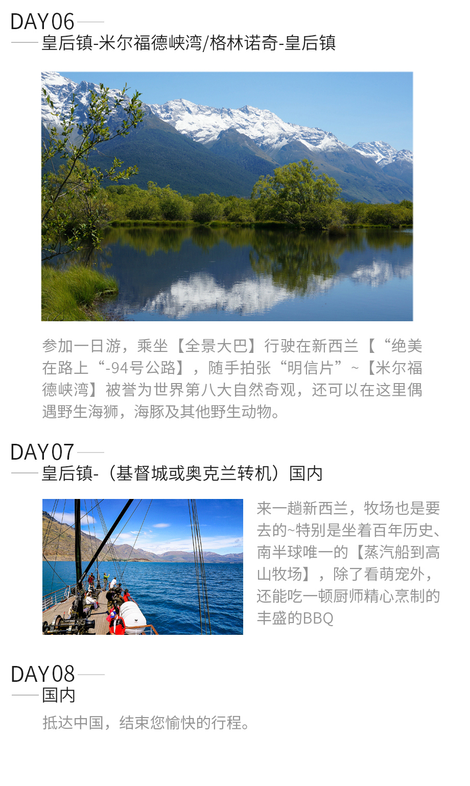 米尔福德峡湾风景巡游项目因自由行个人选择参加项目不同,如跳伞、热气球等,不能提前包含,如需预定其他门票可免费代订~