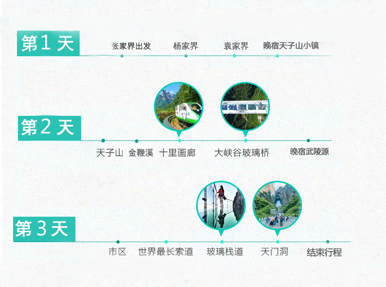 5. 门票:张家界国家森林公园门票,天门山国家森林公园门票(含大索道+玻璃栈道+环保车),大峡谷玻璃桥B线门票(含玻璃桥+玻璃桥鞋套+大峡谷景区);