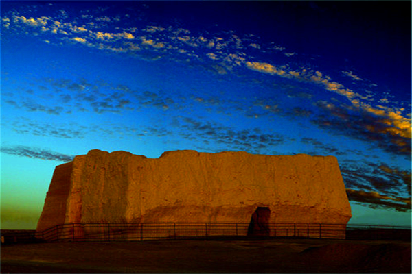 玉门关·又称小方盘城,随丝绸之路的兴盛而繁盛起来,曾经是西域商贾和中原人士络绎往来的必经之地。 ·和田美玉自古从这里输入中原,因此得名。 ·千百年来岁月的侵蚀,玉门关早已损失了当年的样貌,现在的玉门关看似是一个夯土堆的遗迹。