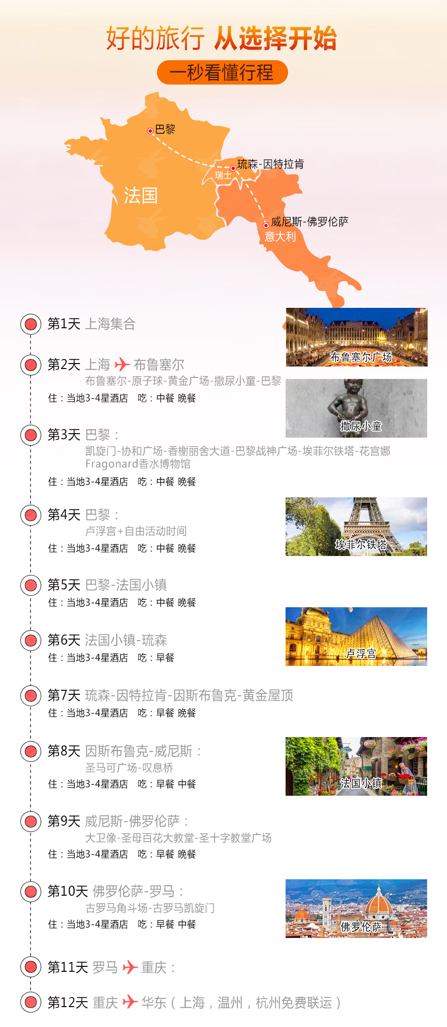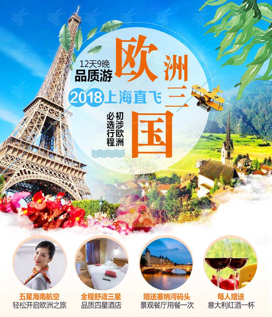 3.用餐:酒店内西式自助早餐,行程中所列的午晚正餐(中式5菜1汤+茶水+水果),共计9餐(餐标6欧元/人/顿);