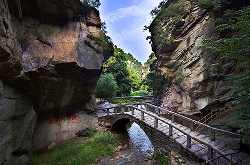 峡谷幽深,所有自然景物都自称奇趣。大自然的鬼斧神工,把这条峡谷雕凿得景中有奇,奇中有景,出人意外,神秘莫测。瀑布龙潭既雄伟壮观,又揣急惊险,瀑布轰鸣,潭水急旋,峰崖陡峭,谷深路窄。登梯走桥时可从险中观景,游人追求险中景,甘愿“铤而走险”身临险境,领略险中景的妙趣,险中景给游人增添了力量,大有不到真潭非好汉的感受。