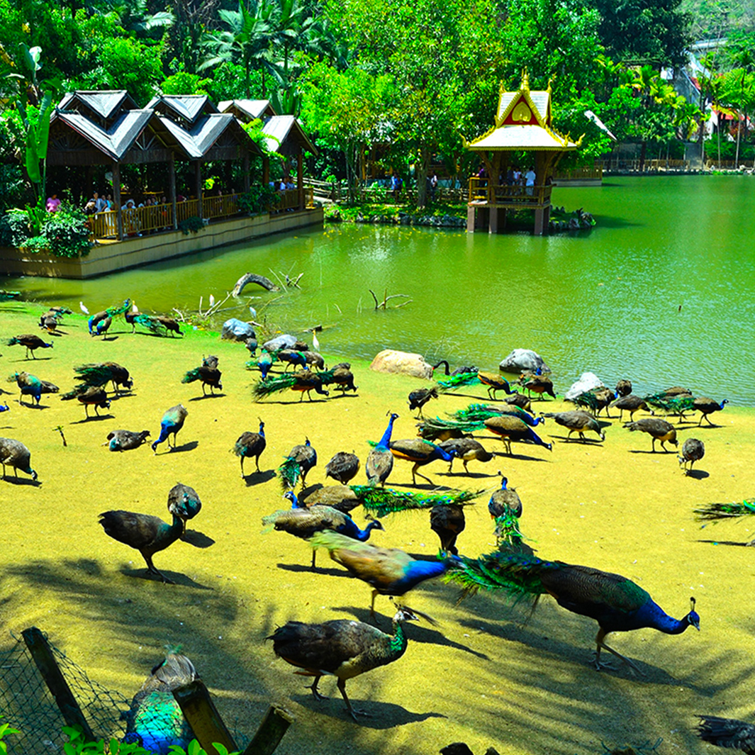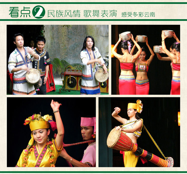 1. 园区大门票; 2. 观看孔雀山庄孔雀放飞; 3. 各种动物表演; 4. 爱伲族民族风情表演。