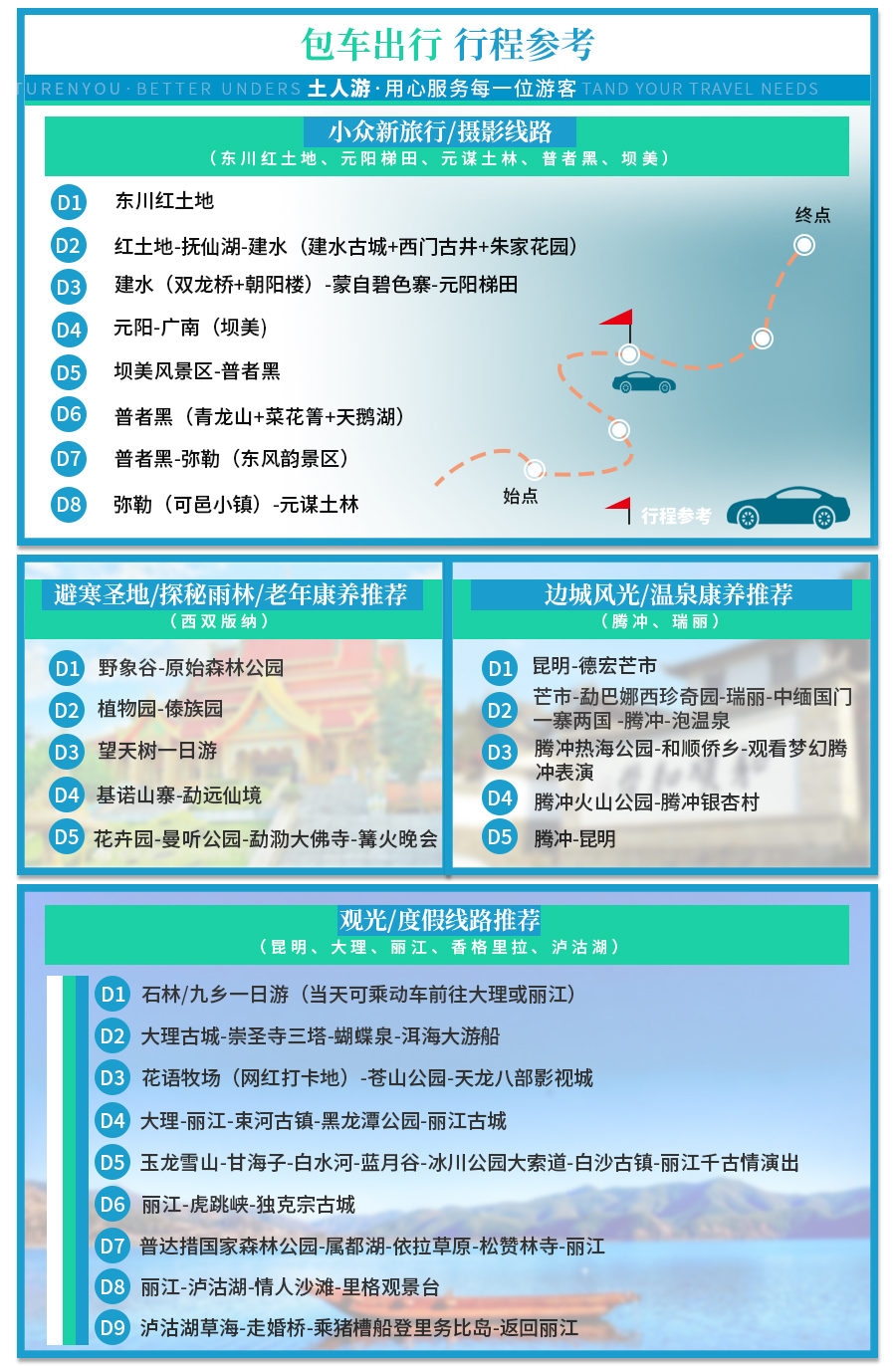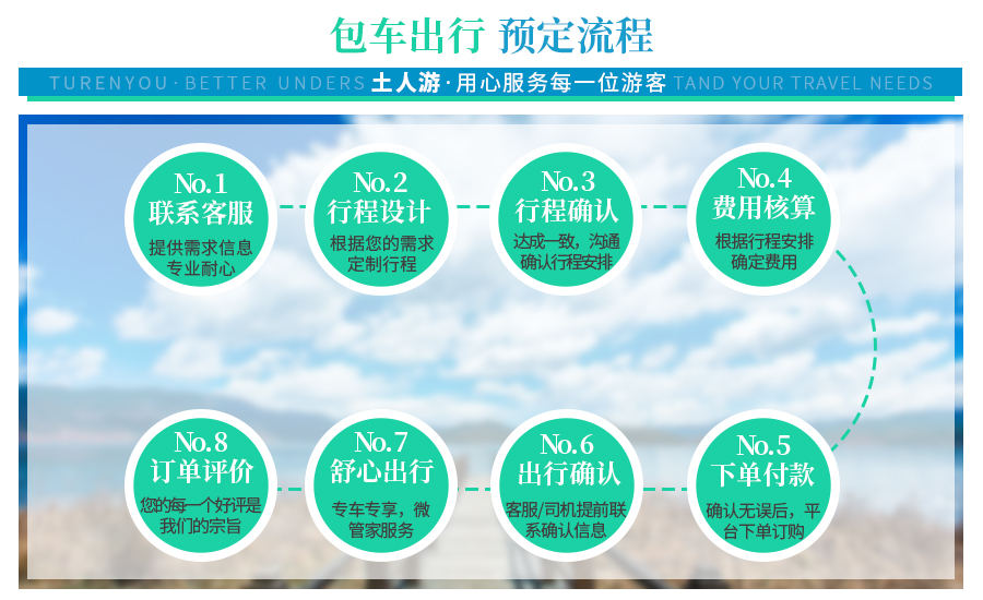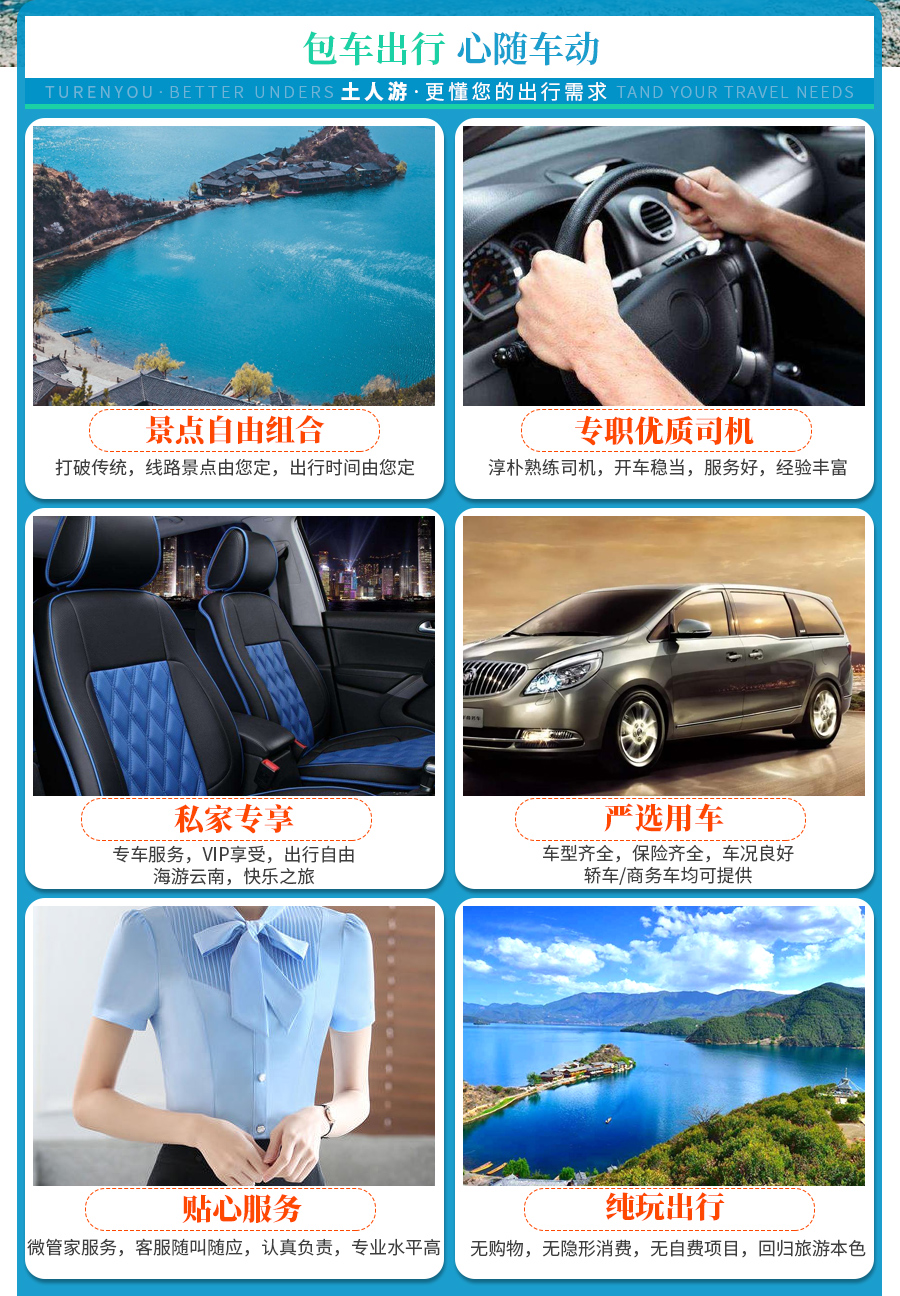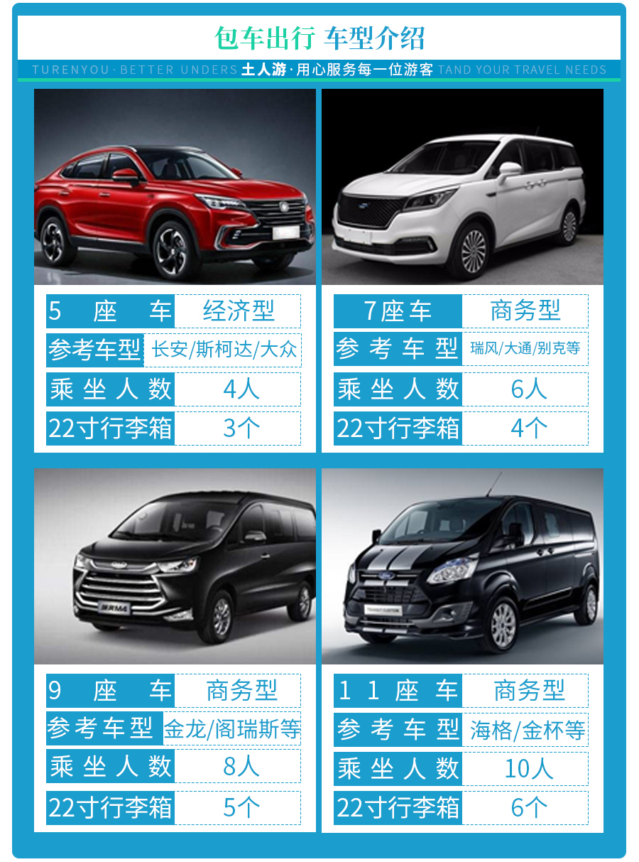 温馨提示:请游客拍之前联系供应商客服确认包车的线路天数、人数、车型,客服确认之后再拍。
