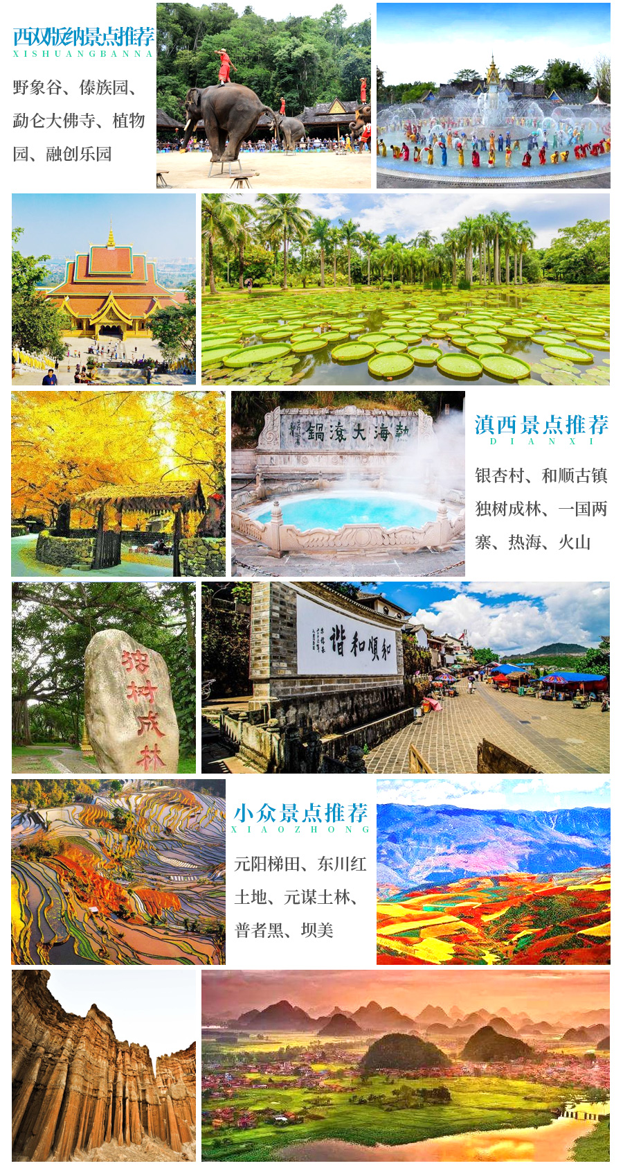 6、云南是个多民族的省份,当地以酸辣口味为主、凉菜居多;旅游的团队餐一般是10人一桌,云南饮食和其他省份有较大差异,可能不合您的口味,请作好心理准备;当地水土为弱酸性,建议多饮茶水。