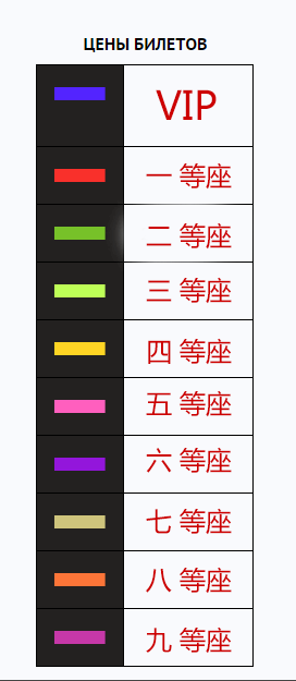 注:下图分别为座位分布图及座位等级图解