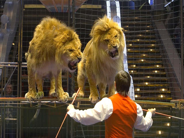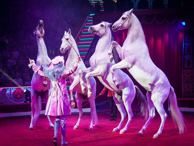 “俄罗斯国家大马戏”最擅长驯演大型猛兽,如狮、虎、熊、象等都是传统的表演项目,驯养难度非常大、演出异常彩。滑稽小丑、大跳板和高空飞人都是“俄罗斯大马戏”的经典演出项目。