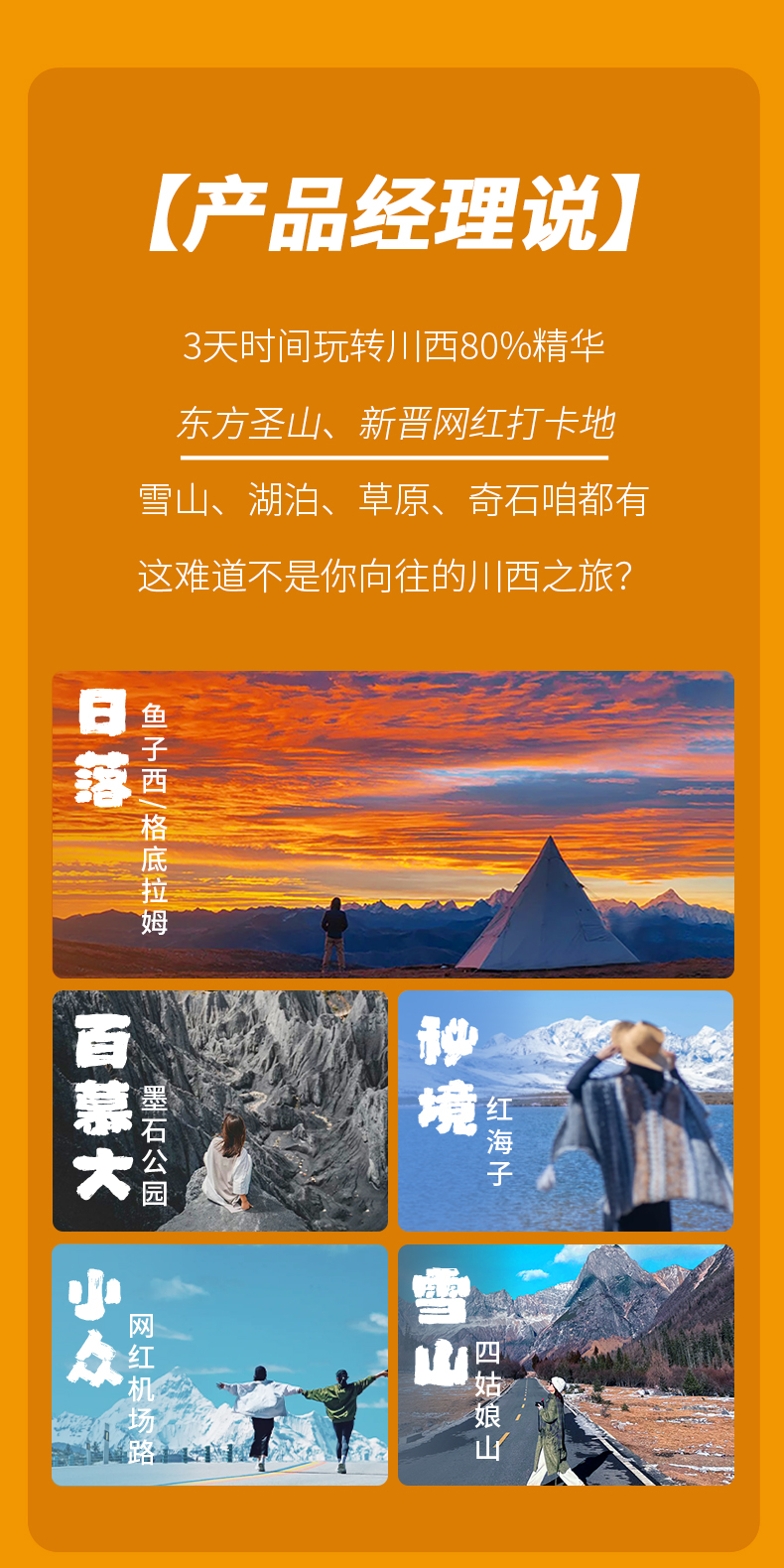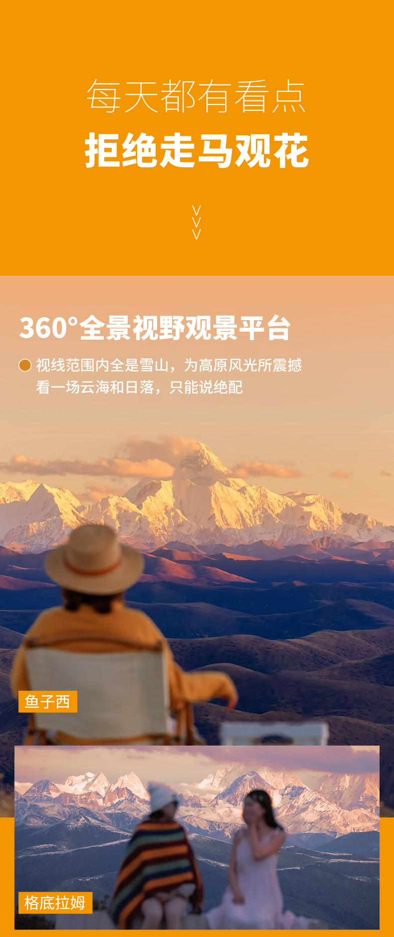注:鱼子西景区因环保防火等当地政策原因施行封山管控,能观赏到日落但无法进入营地,敬请谅解。