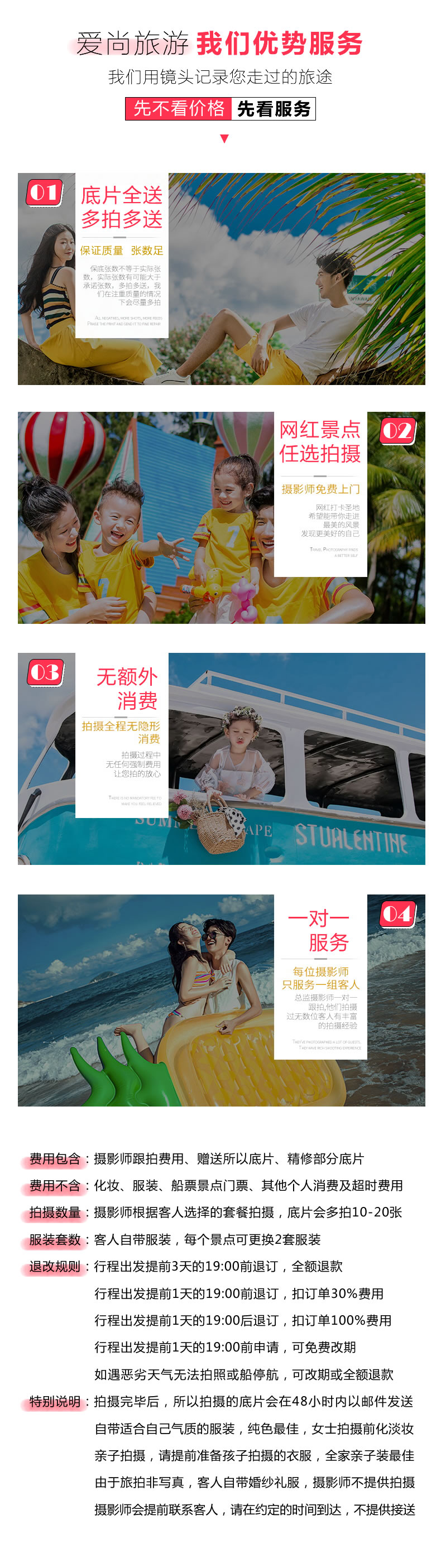 1、关于旅拍。旅拍不是写真,旅拍的意义在于记录旅行过程中的片段,场景和人物大多数是活动中捉拍的,所以效果不能等同于写真类型的摆拍。由于旅拍所拍摄的照片都是在活动过程中捉拍的,所拍摄的照片不能完全保证每一张的表情都很到位!