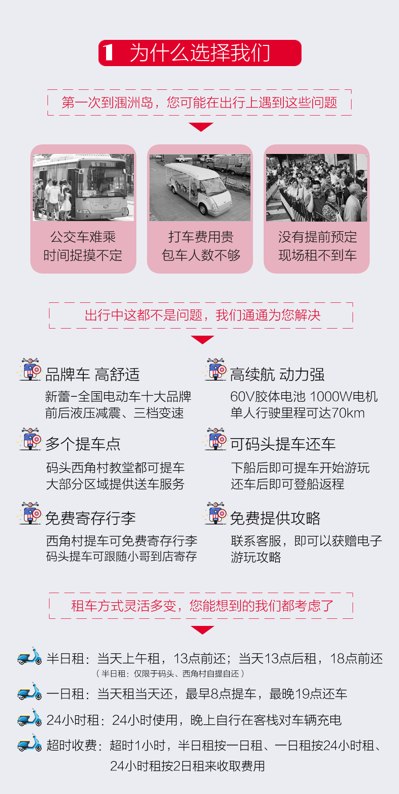 两轮电动车的租用费用,可半日租、日租、24小时租