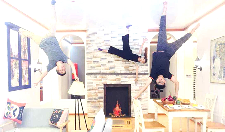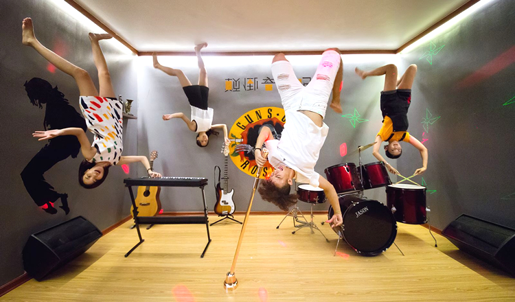 颠倒的话筒,颠倒的架子鼓,地心引力完全消失了!