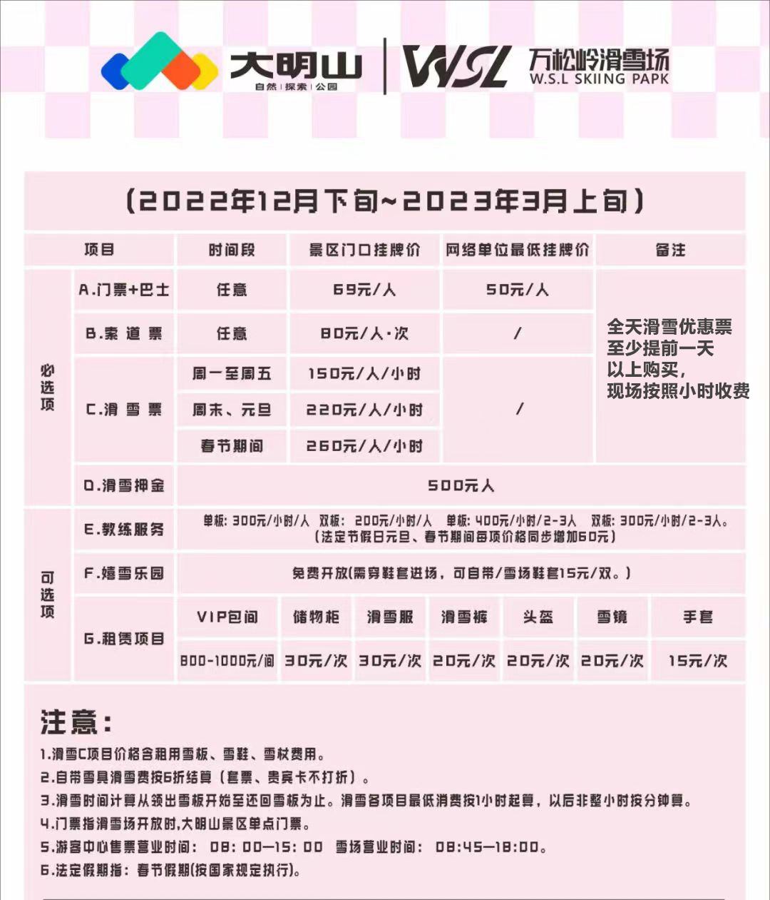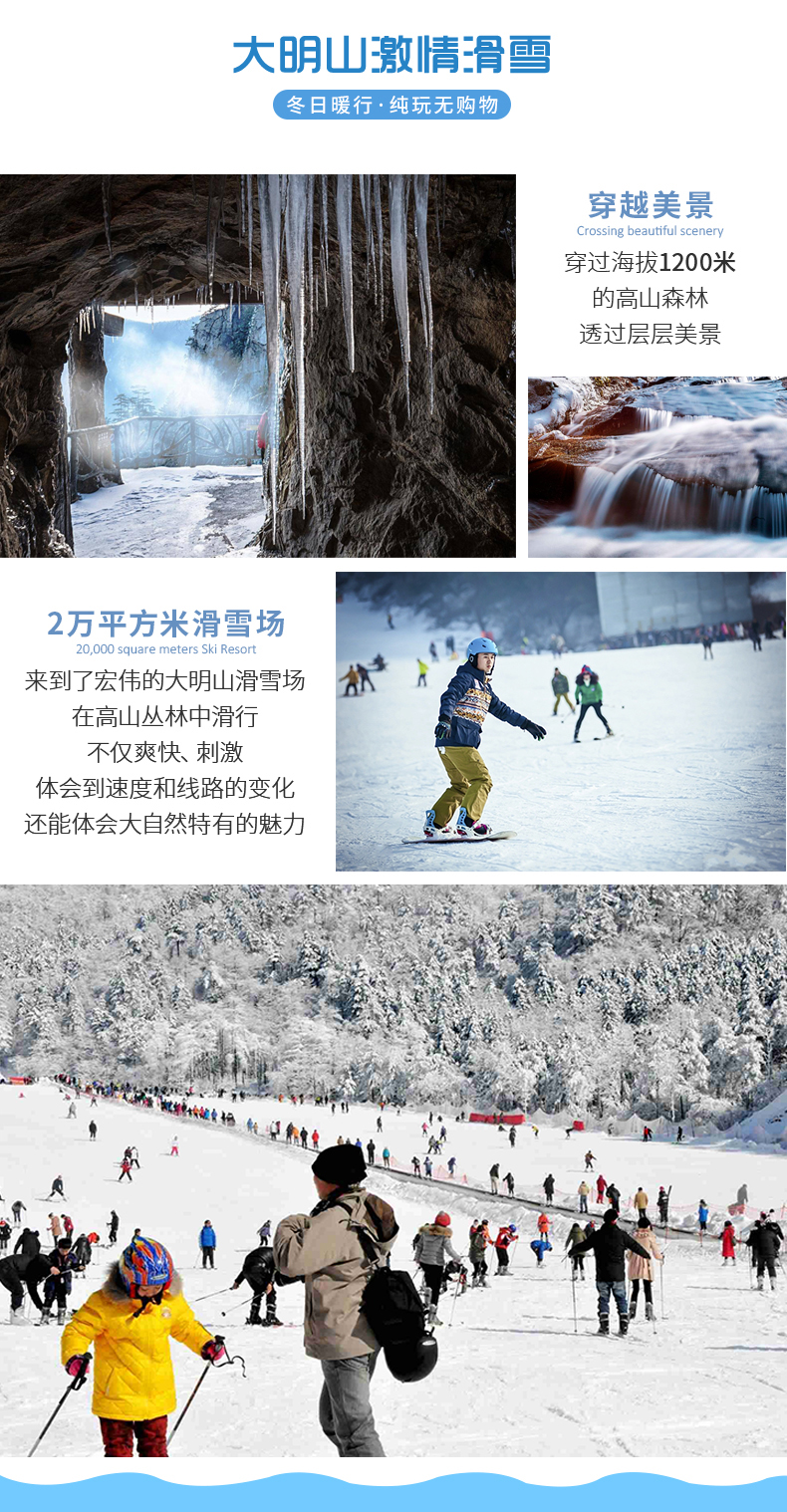 大明山万松岭滑雪场·临安大明山滑雪场位于杭州临安的大明山景区之内,交通便利,雪场的开放填补了临安冬季旅游的空白。 ·雪场滑雪道长800余米,宽约60米,分初级道和中级道,雪道落差250米左右,适合小白和新手进阶的雪友们来此畅滑,还拥有拥有5千平方米的戏雪区,在这里体验雪的... - 更多内容