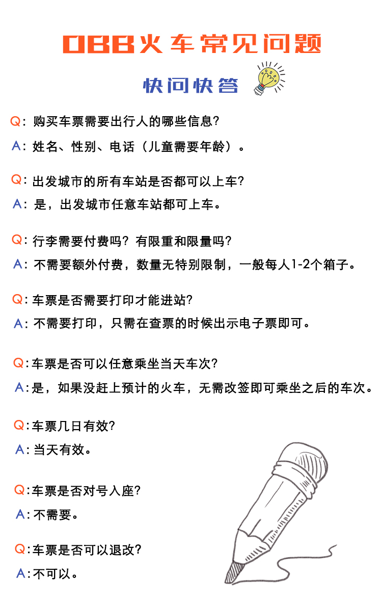 1. 任何原因造成的火车延误,一切解释权归属于ÖBB铁路运营方,我方仅仅作为作为票务代理在第三方平台销售,不承担因此造成的损失。