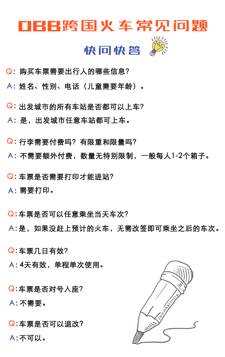 1. 任何原因造成的火车延误,一切解释权归属于ÖBB铁路运营方,我方仅仅作为作为票务代理在第三方平台销售,不承担因此造成的损失。