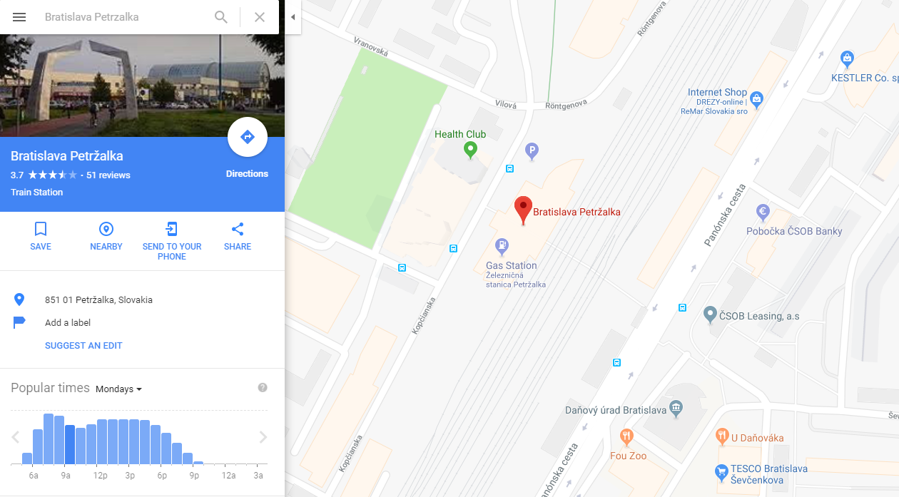 斯洛伐克布拉迪斯拉发Bratislava-Petrzalka站,车站地址和实景图如下所示: