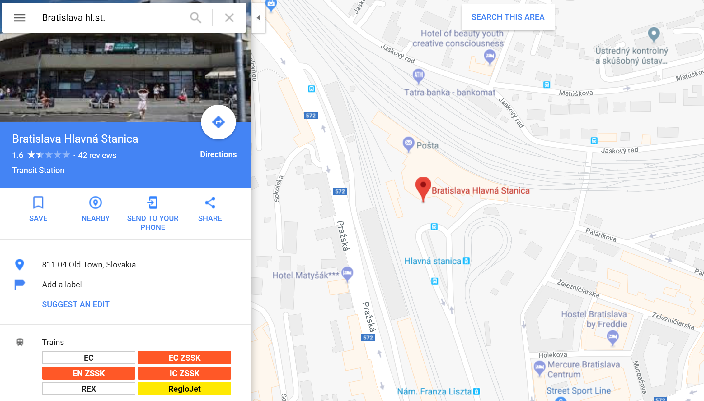 斯洛伐克布拉迪斯拉发Bratislava hl.st.站,车站地址和实景图如下所示: