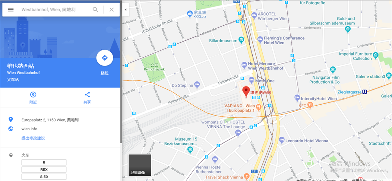 维也纳Wien Westbahnhof(维也纳西站),车站地址和实景图如下所示: