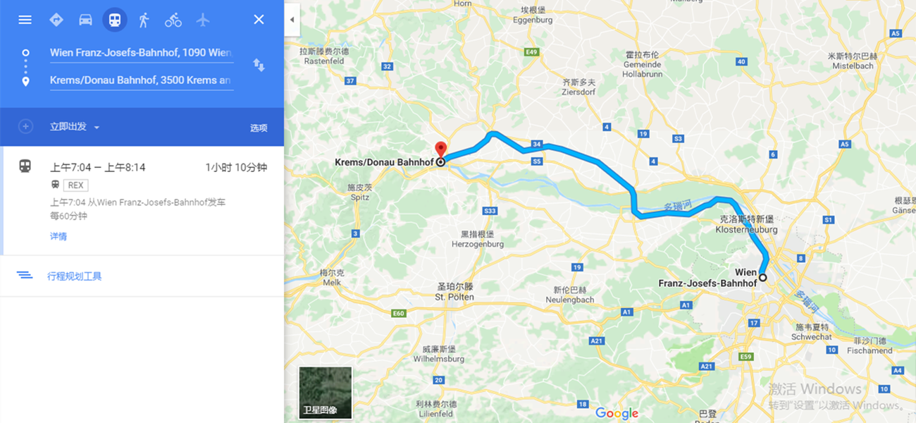 出发站:奥地利 克雷姆斯Krems/Donau Bahnhof(多瑙河畔克雷姆斯火车站)