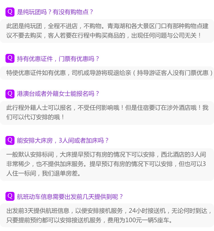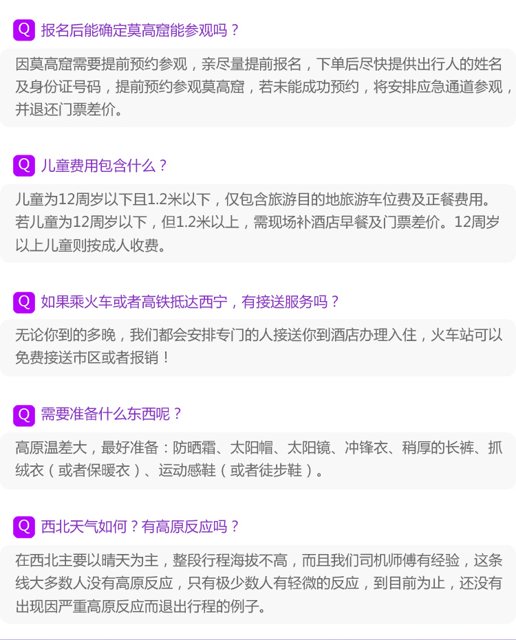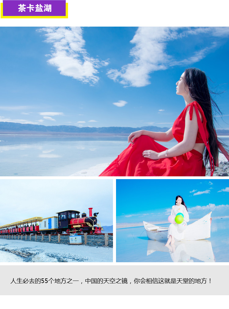 2. 景区门票:不含所有游玩景区门票, 门票价格参考:七彩丹霞(75元)、卓尔山(60元)、茶卡盐湖(75元)、青海湖(100元)、塔尔寺(80元);
