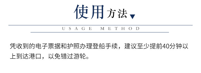★ 限乘当日当次船,请至少提前30分钟到达指定码头,并在对应区域候船和登船,境外供应商、司机不会主动联系催促、也不会等待未按时出现在指定地点的客人。如因买家个人原因迟到、未在指定地点等候或未参加行程等,视为买家自动放弃行程,请恕不予等候。氧气不承担因此产生的后果和损失,请恕无法以此为由要求取消订单、退款或赔偿,请您谅解;