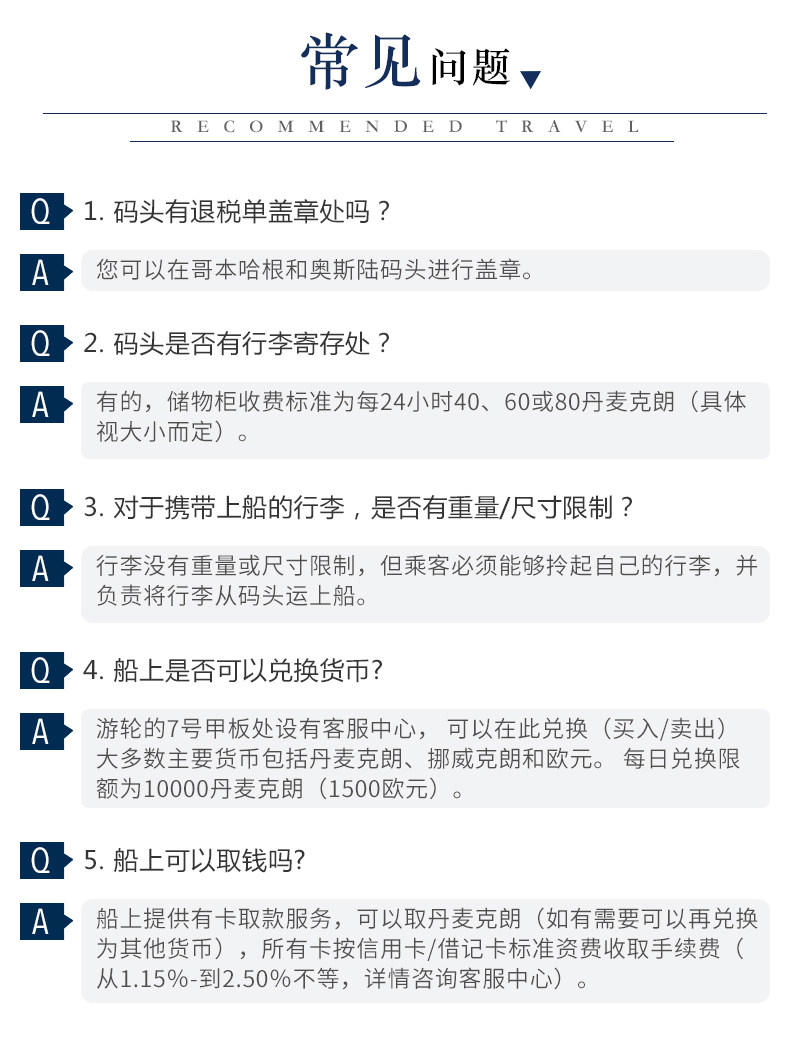 ★ 欧洲法律规定:酒店、餐厅、游轮、车厢等室内或公共场合禁止吸烟,违者将会受到重罚,罚款额高达500-2000欧元不等。请您务必严格遵守欧洲国家的重要规定,不在室内吸烟,并不能使室内(如酒店房间、船舱等)有明显烟味。以免造成不必要的经济损失。