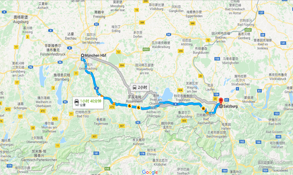 【萨尔茨堡—慕尼黑 全程运行路线】如下图: