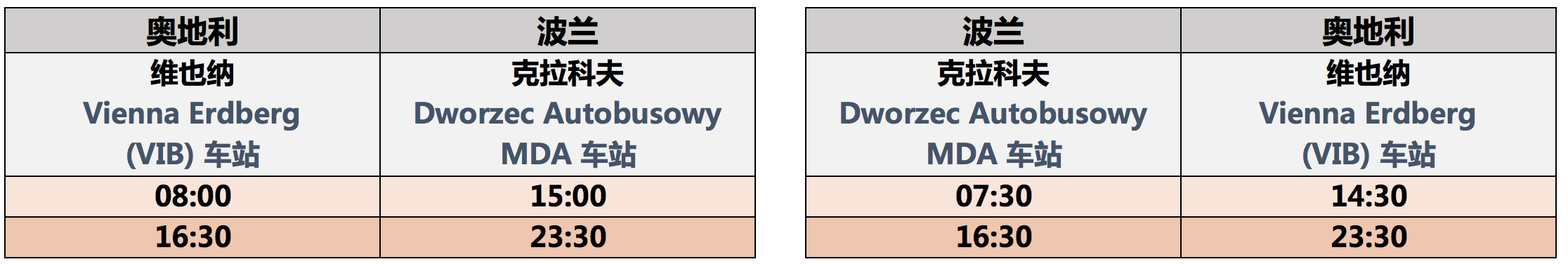 【维也纳—克拉科夫往返时刻表】如下图: