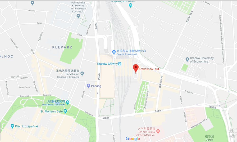到达车站为克拉科夫Krakow MDA车站,地图及车站实景图如下所示: