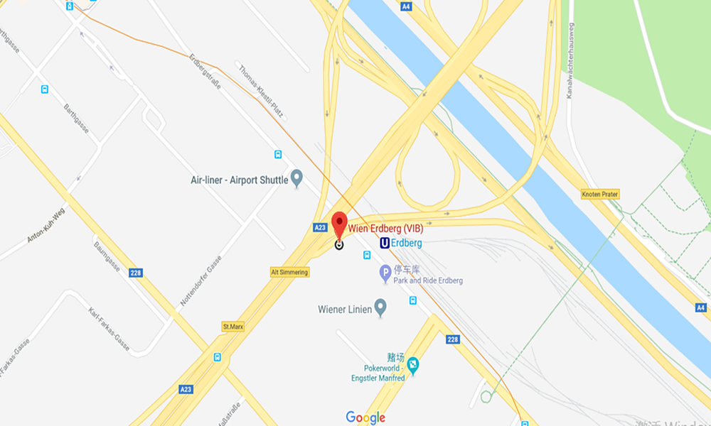 出发车站为维也纳Vienna Erdberg (VIB)车站,地图及车站实景图如下所示:
