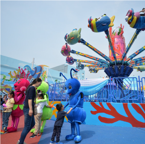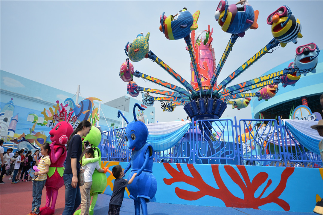 欢乐海洋主题区融合科技性、互动性、观赏性为一体,打造一站式狂欢,欢乐加倍升级!丰富的游玩体验,七大亲子互动设备让游客眼界加倍、亲情加倍、体验加倍、一票通玩,全家出动随时畅想狂欢。