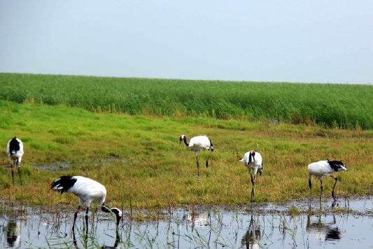 保护区由乌裕尔河下游流域一大片季节性淡水沼泽地和无数小型浅水湖泊组成,沼泽地水深0.75米,湖泊水深达5米。湿地的周围是草地、农田和人工鱼塘,每年共有6种鹤类在此繁殖和停歇,占世界鹤类种类的40%,保护区河道纵横,湖泊沼泽星罗棋布,湿地生态保持良好。